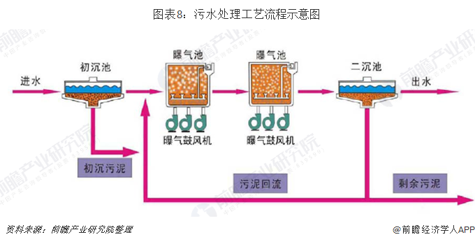 高压离心鼓风机是污水处理系统的关键设备。污水处理系统主要作业工艺流程见下图: