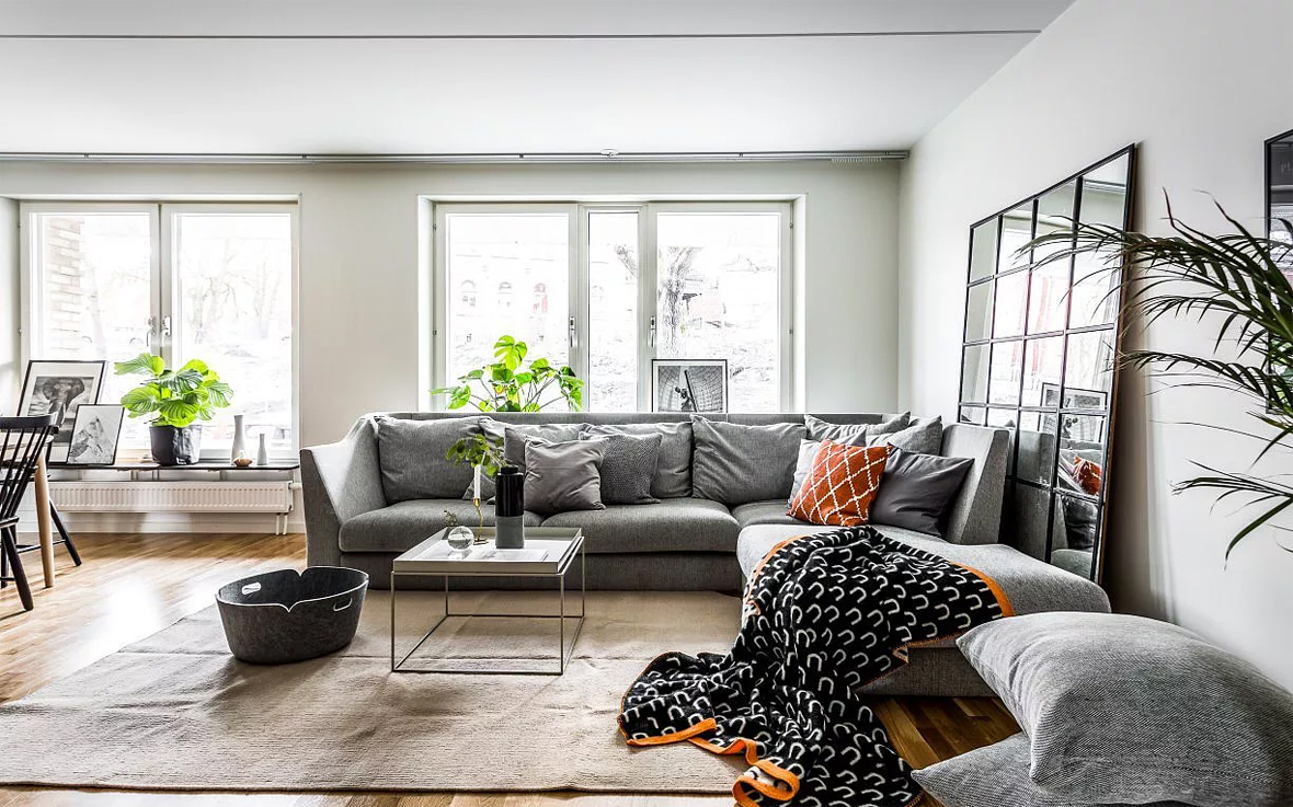 本案是现代北欧风格,设计师挣脱传统原木色风韵的北欧风,利用大面积的纯色,搭配米白的的沙发,实现了空间的简洁清爽感。