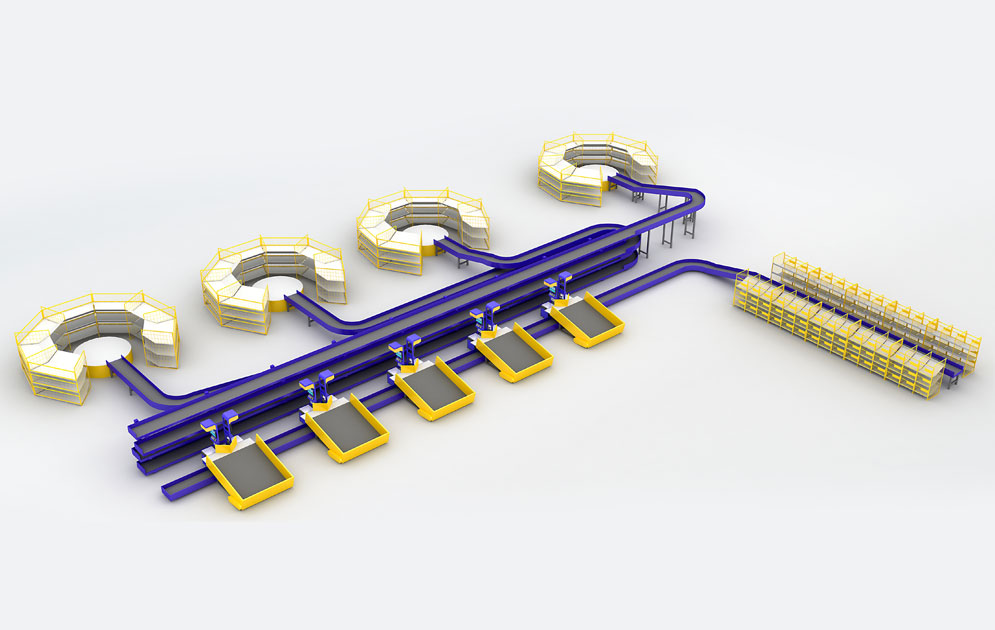 自由组合式分拣格口,节省场地面积,节省人工,节省皮带机投资费用,减少重复劳动、集...